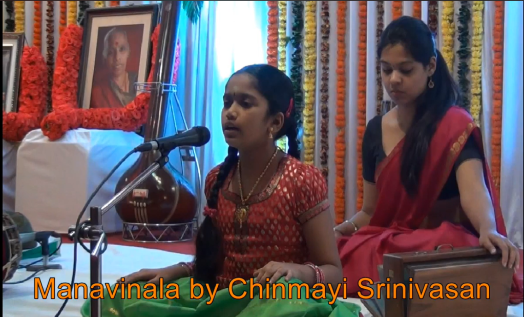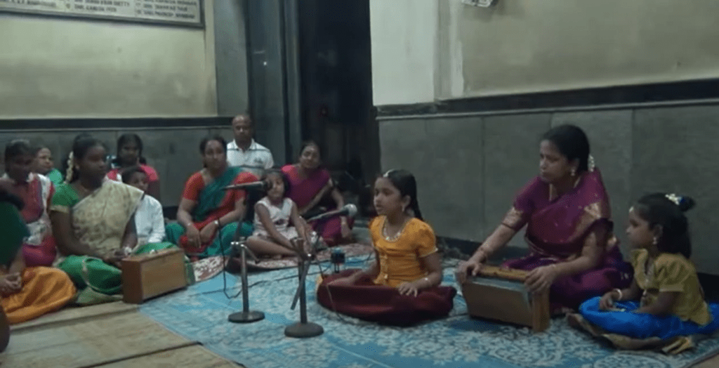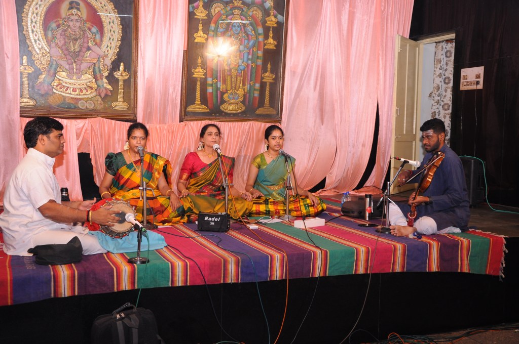 My guru Smt. Rekha Rajan made her musical debut at the age of 5 at the ThyagarajaUtsavam conducted the BhajanSamaj in Delhi and was a regular artist at Yuvavani, AIR’s youth program. She has been a regular performer in temples on festivities like Ramanavami, Krishna Janmashtami, Vinayaka Chaturthi, Skandashashti, Mahashivaratri, Navarathri, and Mandala Pooja conducted by institutions like the Tamil Sangam, AsthikhaSamaj, and SangeethaSabhas across Delhi and Mumbai. She has also sung at the inauguration of numerous international events in Delhi presided by various heads of state, prime ministers and presidents. She has presided as a judge at various college cultural festivals and cultural bodies in Delhi and Mumbai. She has been conducting the ThyagarajaUtsavam in Mumbai over the past few years, where she gives an opportunity to her students to sing on stage.